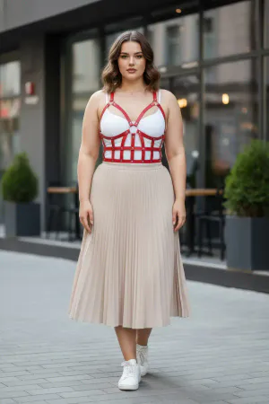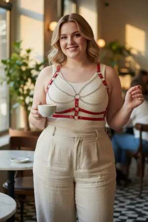 Plus Size Red Women's Belt Chain Detailed Leather Harness Body Accessory - APFT824