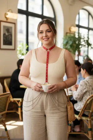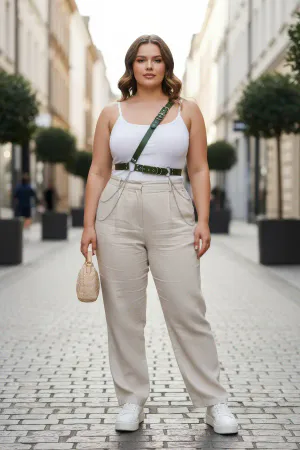 Plus Size Khaki Women's Leather Body Belt with Chain Detail - APFT813