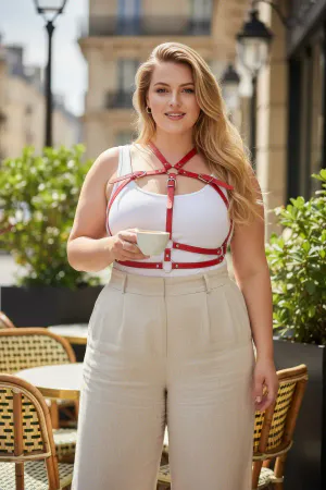 Plus Size Red Women's Leather Belt with Shoulder Detail Harness Body Accessory - APFT717