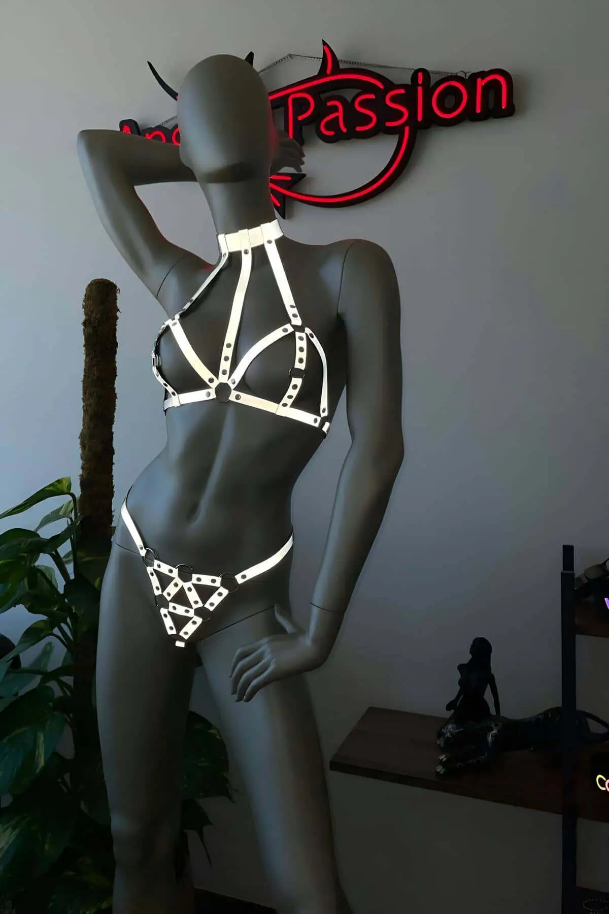 Illuminate the night with this high-visibility reflective bra harness set.