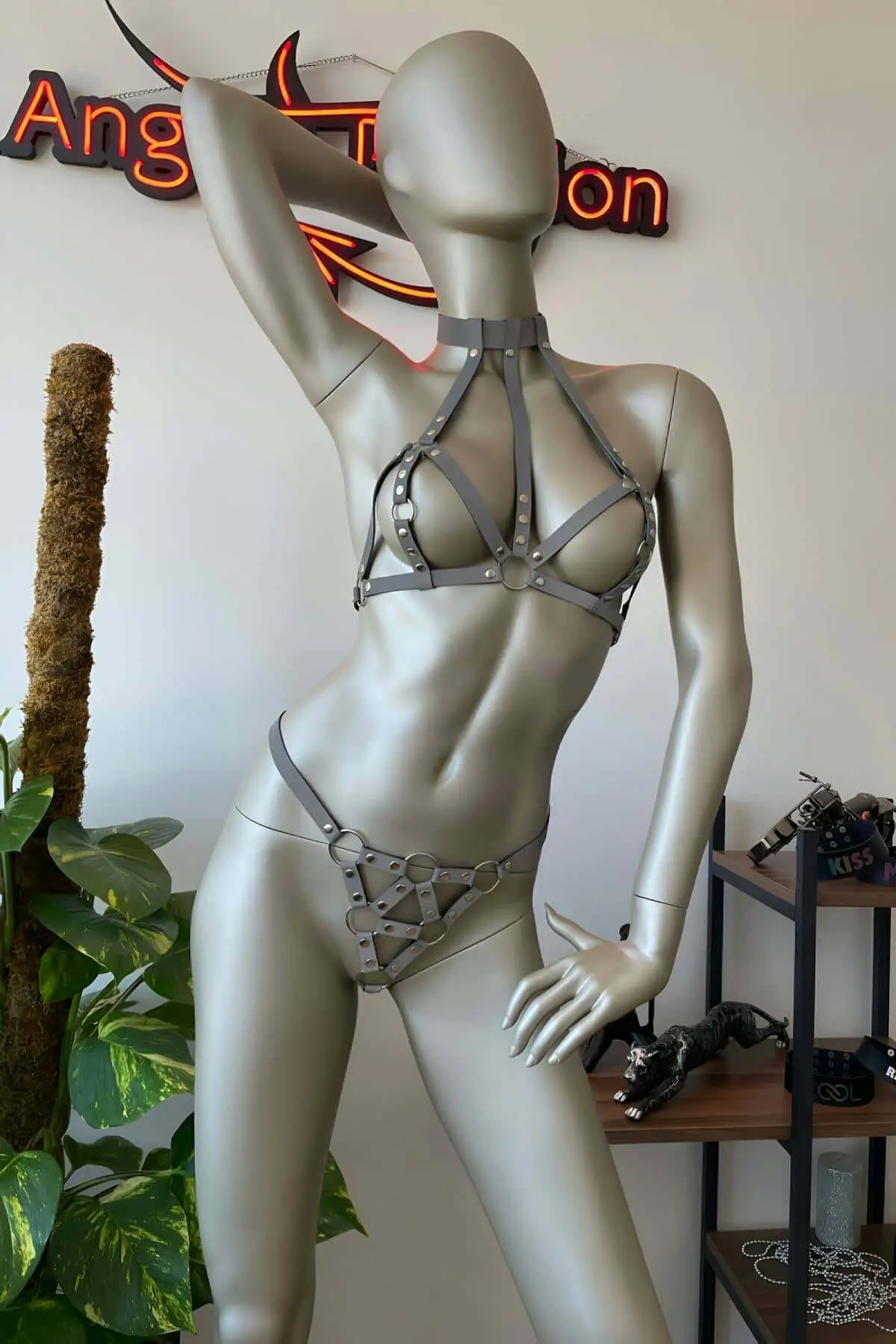Perfectly aligned with the popular trend of Reflective Harness wear, this set ensures you shine brightest under club lights or camera flashes. The geometric, strappy silhouette of the bra and waist piece defines and flatters the torso, making it a powerful addition to your collection of Body Harness accessories. Experience the craftsmanship of this truly unique setβwhere fashion meets visibility, and every detail contributes to a cohesive, impactful, and undeniably sexy look.