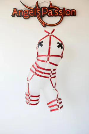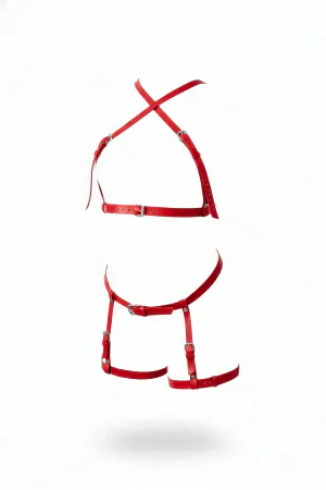 Red Garter Harness with Full Body Leather Buckle - APFT524