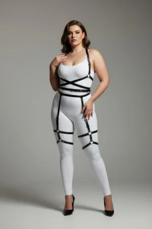 Large Size Black Women's Leather Garter Harness, Stylish Combination Accessory That Wraps the Body - APFT274