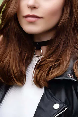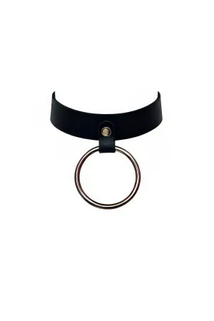 Adjustable Stylish Leather Choker Neck Accessory with Ring Detail - APFT666