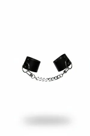 Black Leather Handcuffs - Handcuffs Shiny Leather Wrist Handcuffs with Chain Detail - APFT269