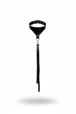 Black Choker Leather Choker with Big Ring Detail - APFT400