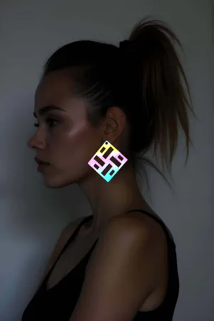 Rainbow Reflective Geometric Earrings, Stylish Laser Cut Earrings - APBJ009