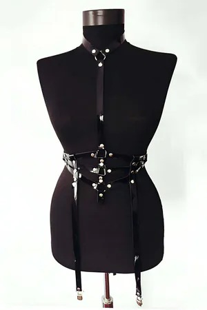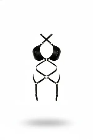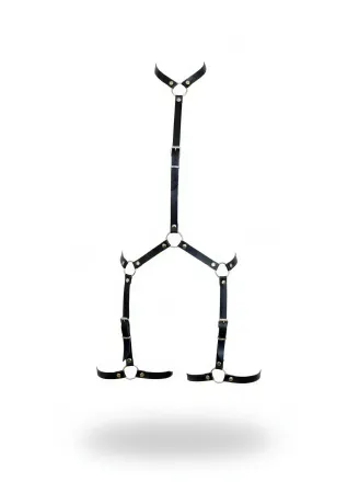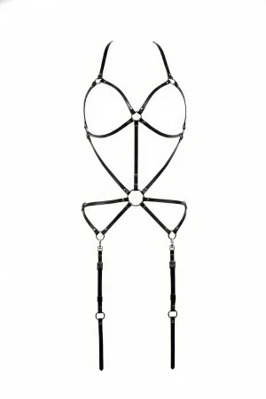 Black Body Harness Faux Leather with Adjustable Leg Detail - APFT234