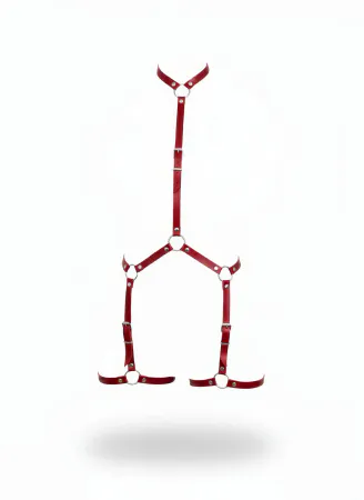 Red Women's Body Harness with Neck and Leg Detail and Metal Ring - APFT234