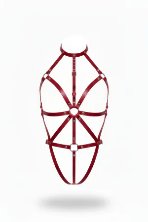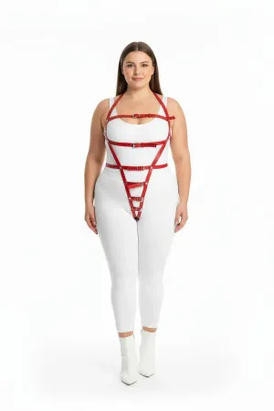 Plus Size Red Women's Harness Suit Full Body Leather Fancy Accessory - APFT894