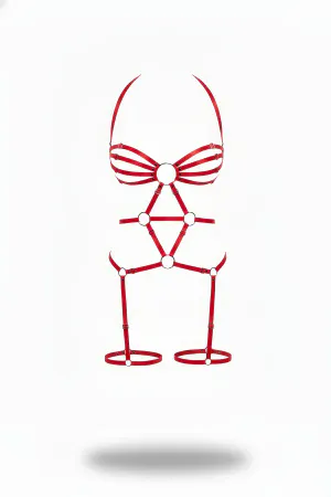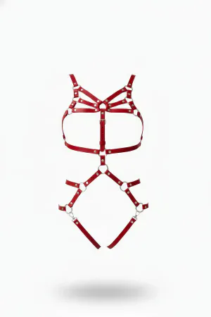 Red Body Harness with Full Body Ring Detail and Geometric Cut - APFT568