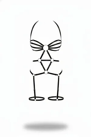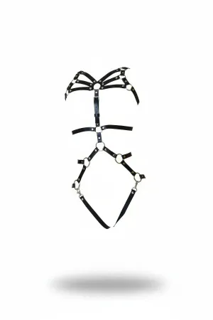 Black Body Harness Faux Leather Adjustable with Metal Ring Detail - APFT453