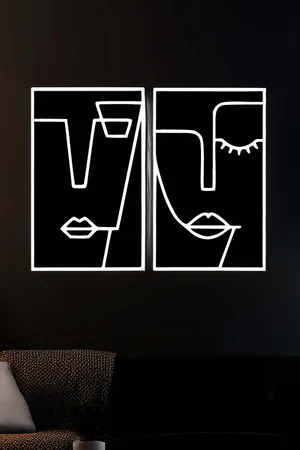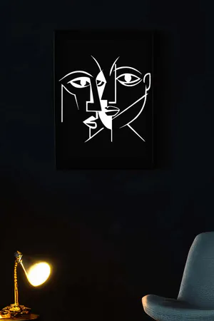 Cubic Abstract Face Paintings on Reflective Leather, Stylish Paintings Reflected in the Dark