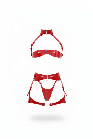 Red Garter Harness Shiny Leather Zipper Set - APFT1373