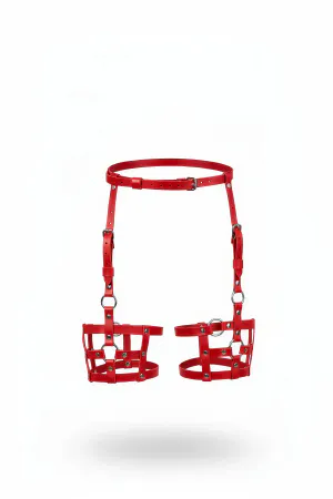 Red Fancy Leather Garter Harness - APFT321