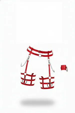 Red Garter Harness with Metal Ring and Staple Detail - APFT310
