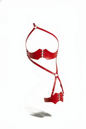 Red Garter Harness Leather Corset Detailed Body Binding - APFT1372