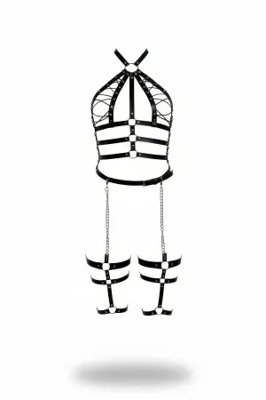 Black Garter Harness Halter Neck with Chain Detail - APFT698