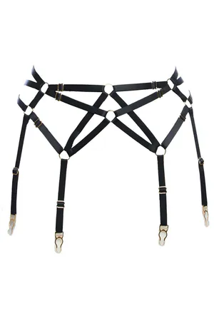 Black Garter Harness with Leather Buckle and Metal Ring Detail - APFT758