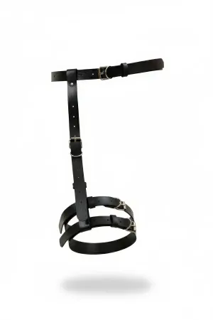 Leg Detailed Choker Leash Handcuffed and Leg Leather Harness Set - APFT699