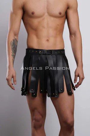 Men's Leather Skirt, Gladiator Skirt, Men's Cosplay Costume - APFTM93
