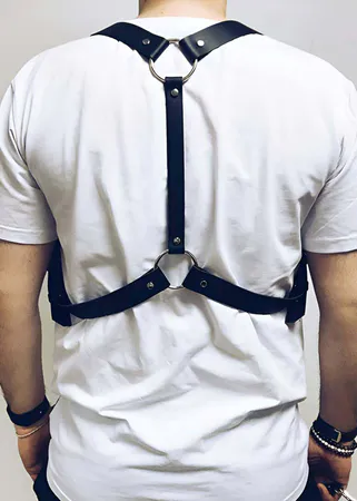 Stylish Men's Shoulder Harness with Round Hole Detail, Leather Shoulder Harness - APFTM218