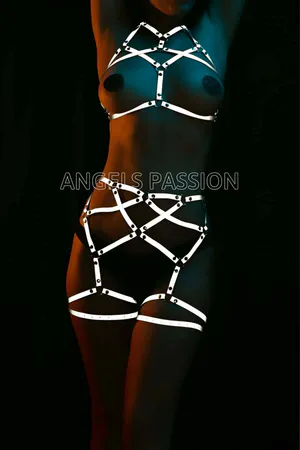Reflective, Glow-in-the-Dark Sexy Harness Bra Set - APFT422