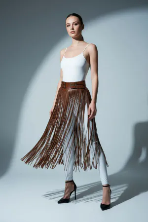 Brown Skirt with Long Tassels and Studded Detail with Buckle - APFT637