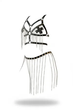 Leather Dress Harness, Mini Leather Skirt, Leather Dress Skirt Harness - APFT1001