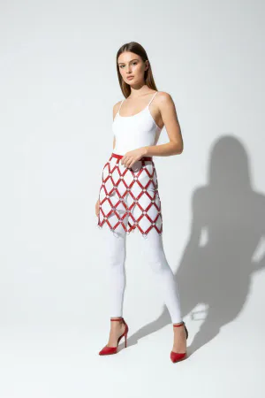 Red Skirt Leather Argyle Patterned Skirt with Hoop Detail Mini Skirt - APFT694