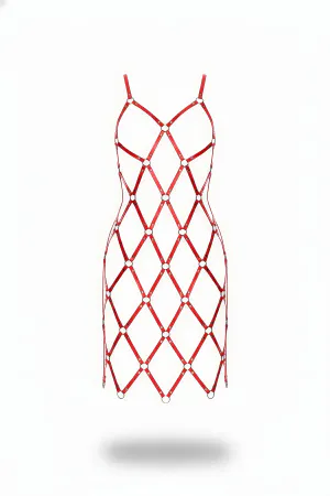 Plus Size Red Leather Skirt Cage Design Fancy Harness - APFT694