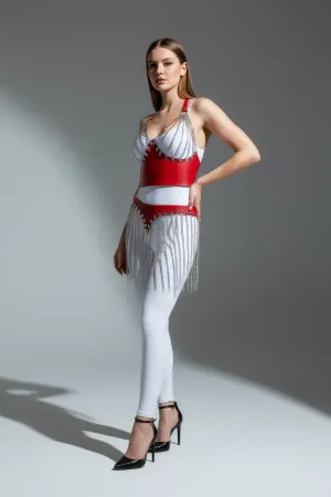 Plus Size Red Leather Skirt Harness Detailed Fantasy Body Accessory - APFT983