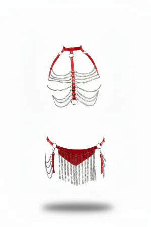 Plus Size Red Skirt Chain Tasseled Leather Accessory - APFT994