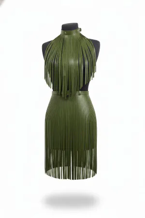 Leather Fantasy Skirt with Thin Tassels - APFT411