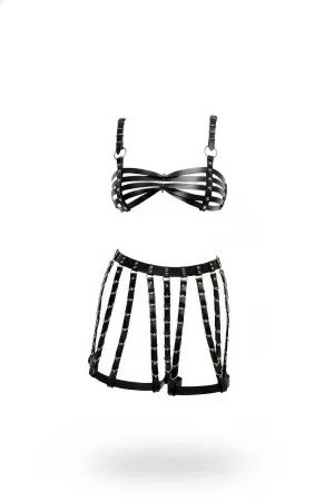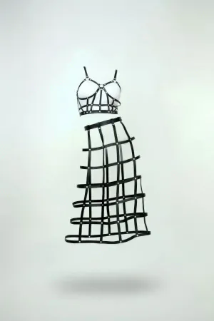 Plus Size Black Skirt with Leather Harness Cage Detail - APFT983