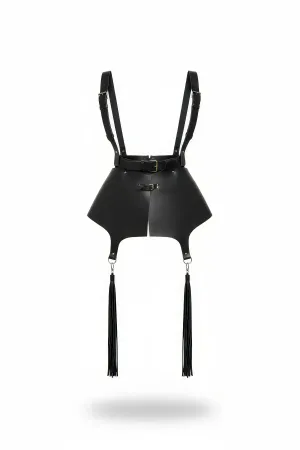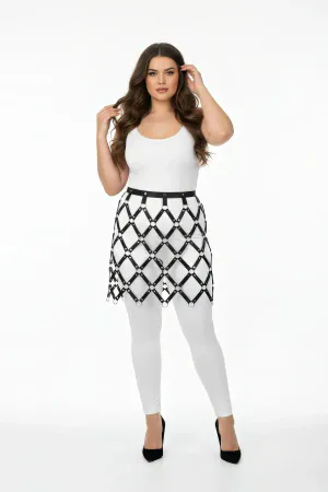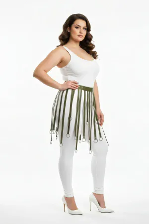 Plus Size Black Skirt Fancy Leather Look Harness with Metal Ring Detail - APFT694