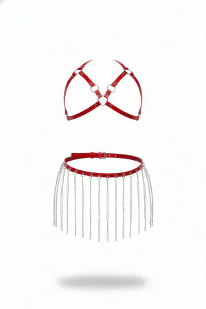 Red Skirt Chain Detailed Skirt Faux Leather Skirt Short Skirt - APFT931