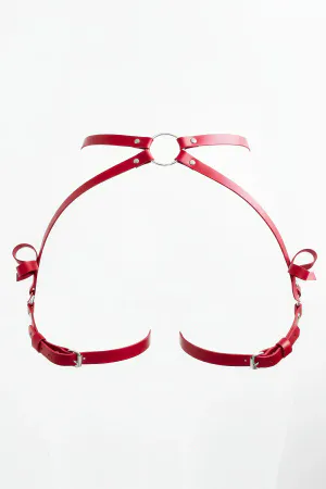 Red Leather Harness Corset with Tassels - APFT408
