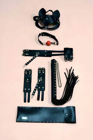 Fantasy Slave Set with Cat Mask, Hand and Foot Handcuffs - Leash - APFT1341