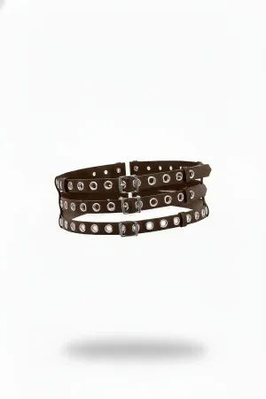 Stylish Leather Belt with 3 Buckle Detail on the Front - APFT618