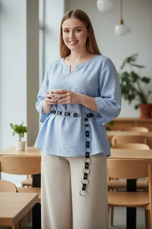 Plus Size Black Women's Belt Chain Ring Detailed Dress and Shirt Combination - APFT427