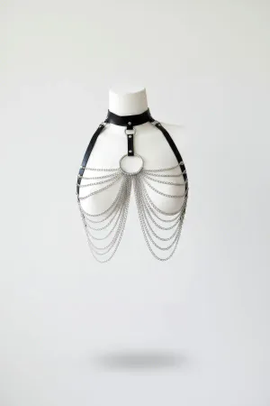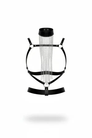 Plus Size Black Women's Leather Harness Belt with Chain and Choker Detail - APFT1066