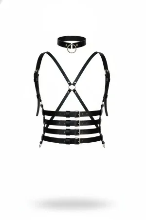 Black Women's Belt Leather Body Harness with Multiple Buckles - APFT609