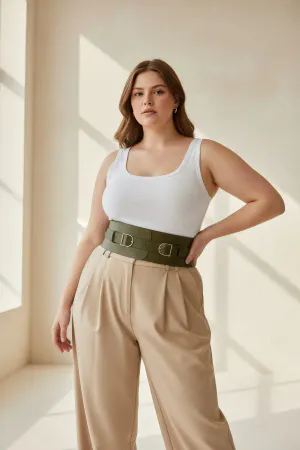 Plus Size Khaki Women's Belt Wide Waist Corsage with Double Buckle Detail - APFT875