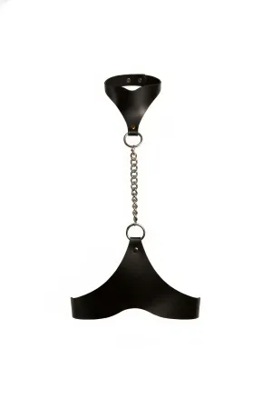Black Women's Belt Chain Detailed Leather Body Belt with Neck Collar - APFT1265