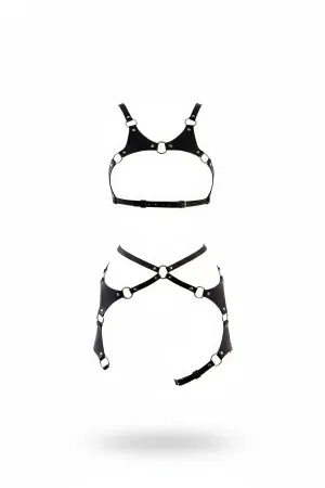 Plus Size Black Women's Full Body Leather Harness Set with Ring Detail - APFT502