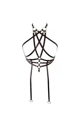 Stylish Leather Harness with Chain Detail on the Back - APFT206