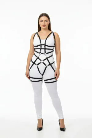 Black Harness Suit Leather Chain Detailed Body Accessory - APFT456