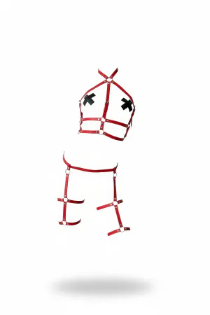 Red Harness Suit Leather Halter Collar Body Belt - APFT272