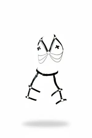 Black Harness Suit Chain Detailed Leather Body Accessory - APFT497